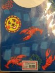 Kräfthaklappar med KNYTSNÖREN i nacken, BLÅ med kräftdekor. 4 pack